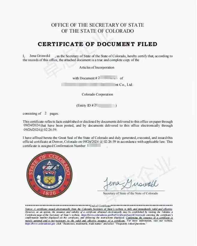 1.公司名稱:科羅拉多州公司必須使用英文名稱注冊,LLC公司須以“Limited Liability Company”或簡稱“LLC”結(jié)尾;有限公司則可選擇“Limited”、“Corporation”、“Incorporated”或其縮寫“Ltd”、“Inc”、“Corp”作為結(jié)尾