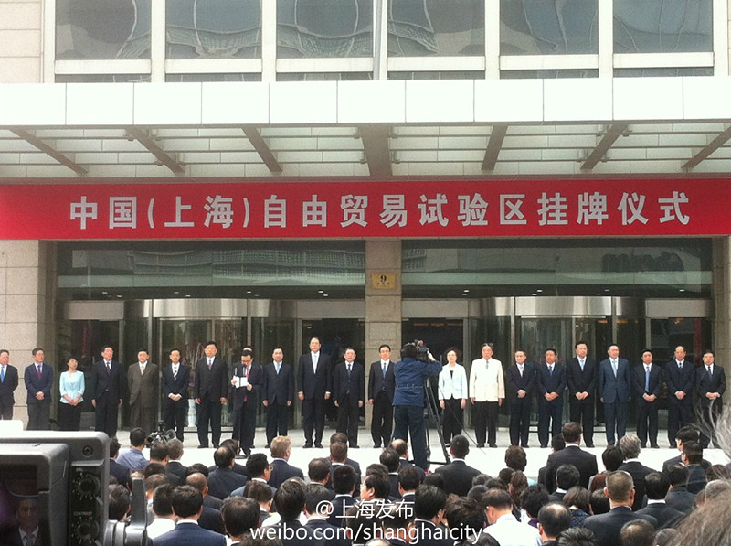 9月29日,中國(上海)自由貿易試驗區掛牌儀式舉行。圖片來源:上海市政府新聞辦公室官方微博