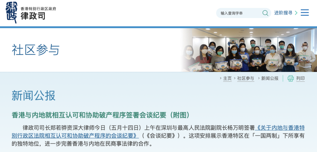 • 香港和內地的破產程序互認與協助機制的建立,緊隨香港高等法院夏利士法官最近在上海華信和深圳年富兩樁案件中的裁決。在這兩起案件中,香港法院分別認可了由上海和深圳法院任命的破產管理人。