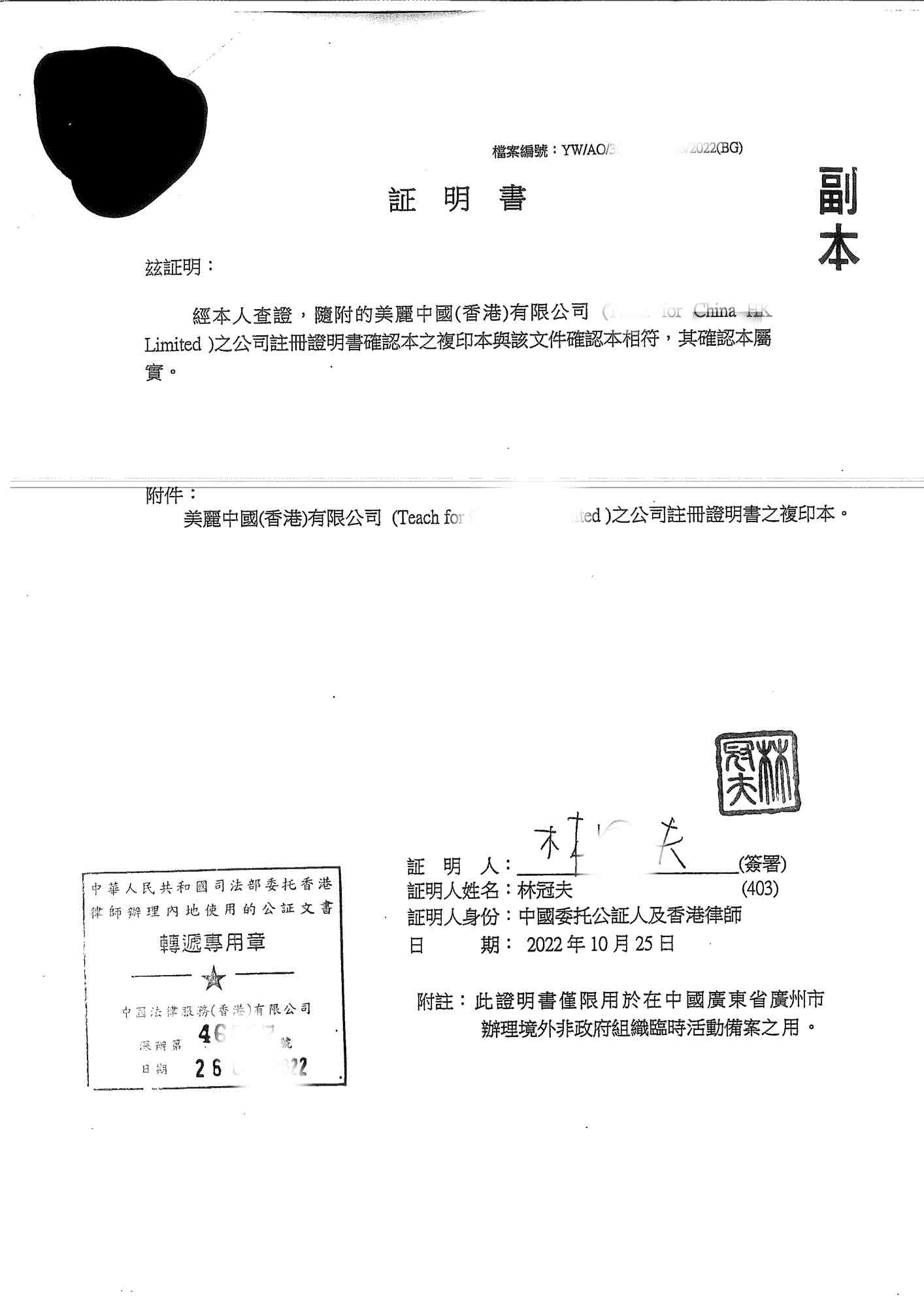 香港公司內(nèi)地訴訟公證文件: