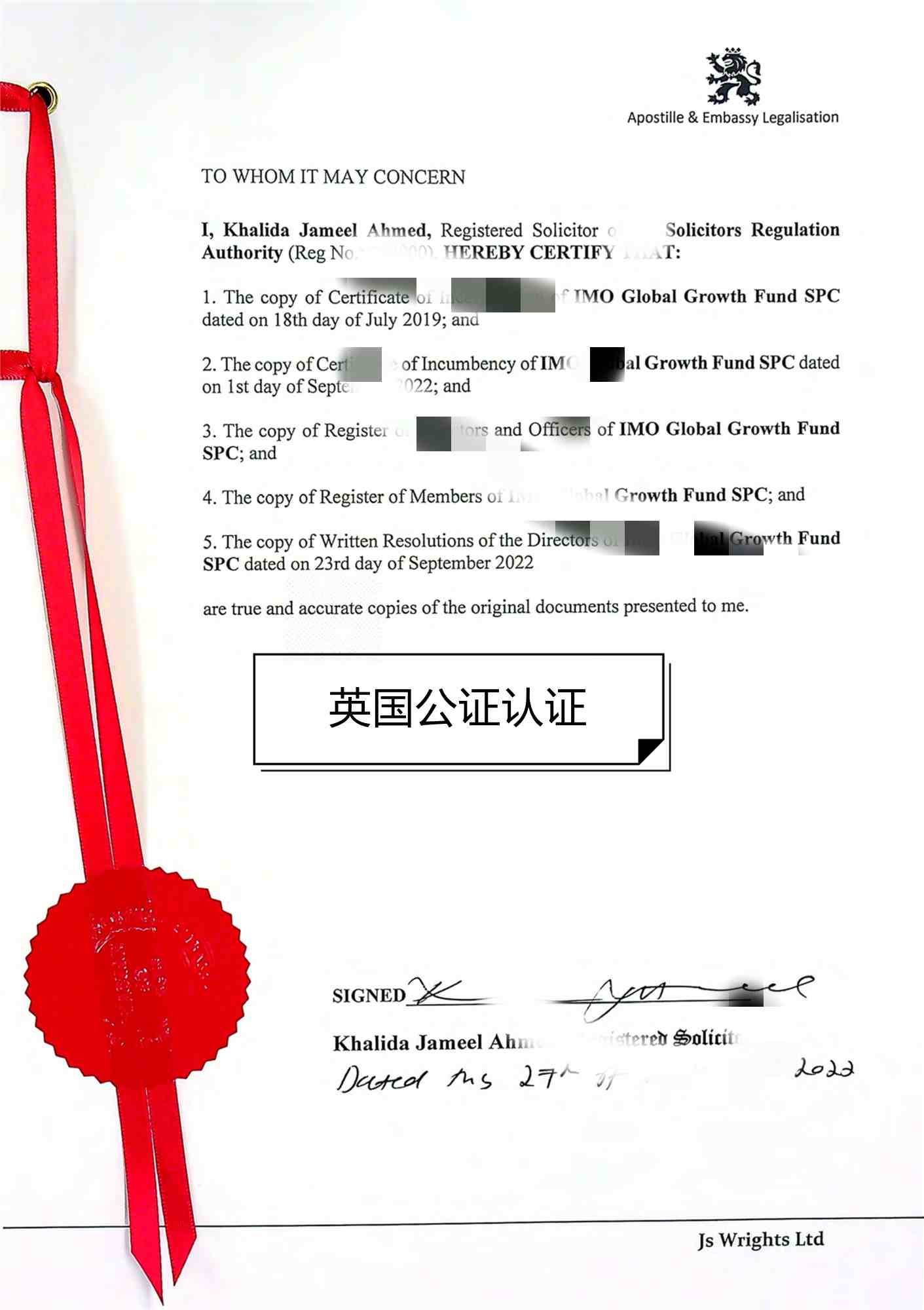 2、英國(guó)外交部認(rèn)證;