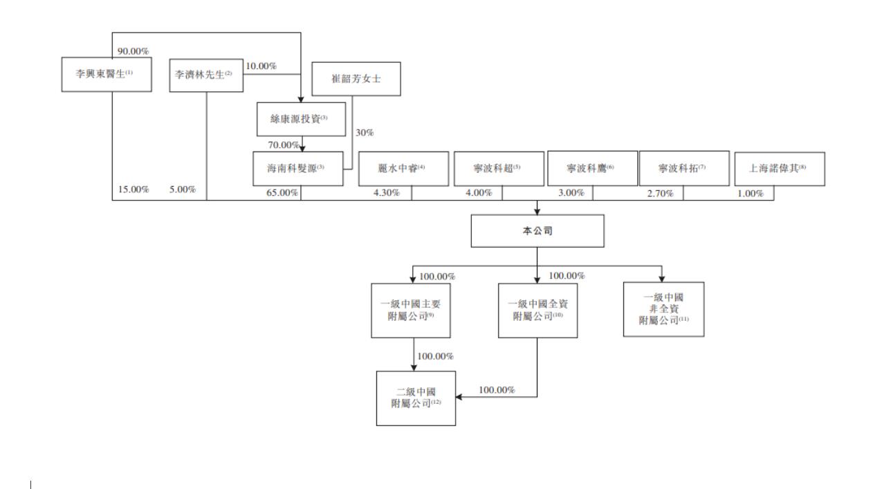 (海南科發源,由絲康源投資、崔韶芳女士(李興東醫生的配偶)分別持有70%、30%;而絲康源投資的股東為李興東醫生(90%)、李濟林先生(10%))