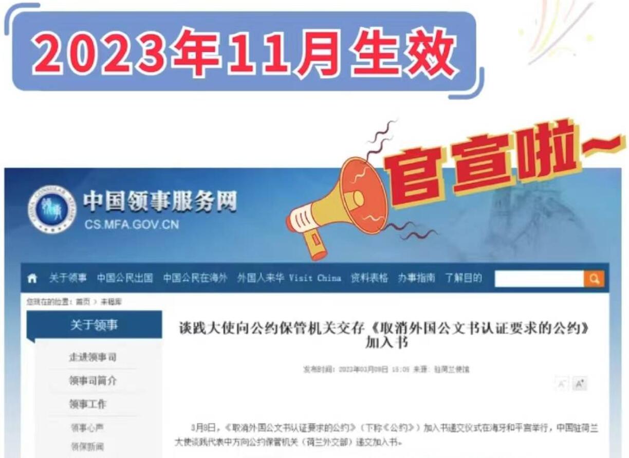 不出意外的話,今年11月左右生效之后,公約國文件再也不需要三級認證了。
