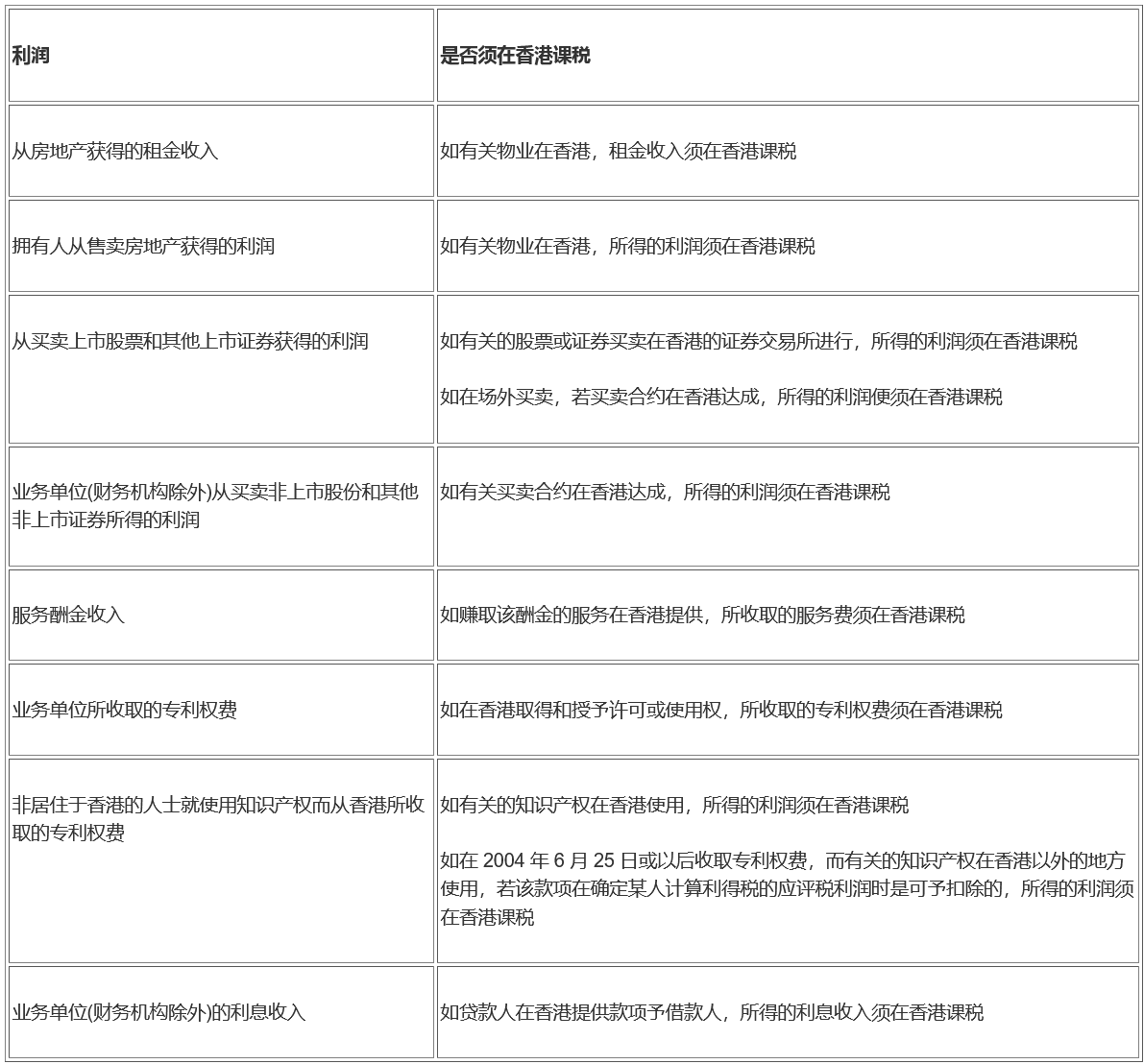 首先要了解一下香港征稅原則:香港采用地域來源原則,向在香港經營任何行業、專業或業務所得的利潤征稅。只有于香港產生或得自香港的利潤,才須予以征收利得稅。簡而言之,任何人在香港營商,但其利潤是從香港以外的地方所獲得(海外利得),則不須在香港就有關利潤繳稅。