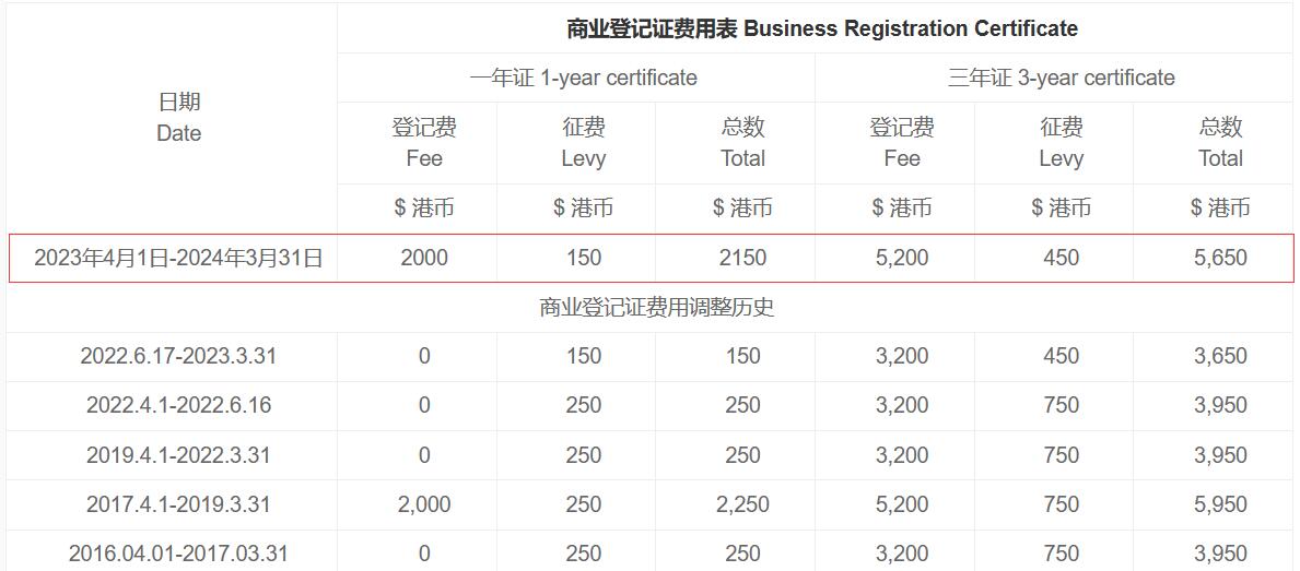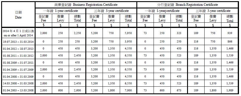 《2013 年收入(減少商業登記費)令》將于 2014年 4 月 1 日屆滿。業務經營者須就于該日或之后1生效的商業或分行登記證繳付訂明的商業登記費或訂明的分行登記費(視屬何情況而定)和征費。就每張登記證須繳付的金額,請參閱商業登記費及征費收費表。