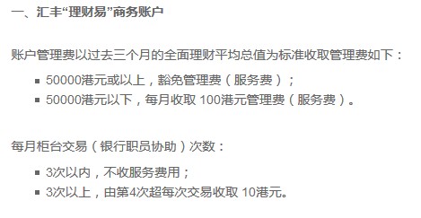 匯豐銀行不是按日均,是按三個月全面理財平均總值為標準,如果你是匯豐理財易商務賬戶,那按過去三個月的“全面理財平均總值在5萬港元或以上,就不用交管理費,如果是低于5萬港元,那就要交管理費。 全面理財平均總值計算 https://www.liankuaiche.c答