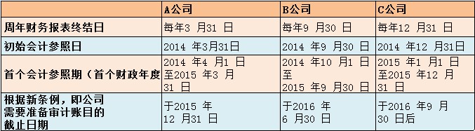 原有公司“初始會計參照日”及“首個會計參照期”確定表