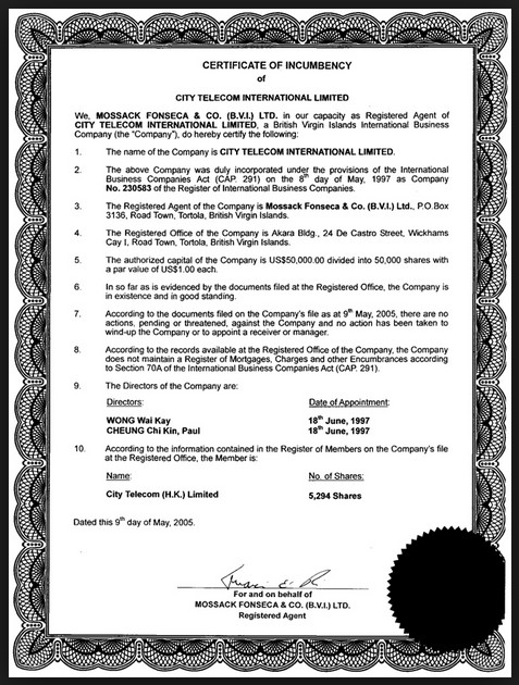 BVI公司的incumbency找你當初設立BVI公司的代理就能辦理了。答