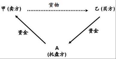 “托盤業(yè)務(wù)”是在貿(mào)易實(shí)踐中產(chǎn)生和發(fā)展的一種交易類型,沒有嚴(yán)格統(tǒng)一的定義。實(shí)踐中,主要有以下三類。第一種類型:以鋼材托盤業(yè)務(wù)為例,最簡單的托盤業(yè)務(wù)一般涉及三方主體:鋼廠(賣方)、鋼貿(mào)商(買方)、托盤方(資金提供者)。鋼貿(mào)商因缺乏采購資金,需要托盤方提供融資;托盤方向鋼廠購買鋼材并預(yù)付貨款,再賒銷給鋼貿(mào)商并指示鋼廠向鋼貿(mào)商交貨,鋼貿(mào)商最后向托盤方付款。(參見下圖)。