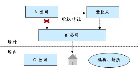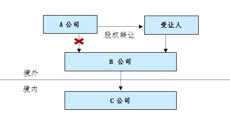 以上述A、B公司為例,如果B公司同時持有中國境內公司C的股權,當A公司轉讓B公司的股權時,如果中國稅務機關認為此次轉讓不具有合理的商業目的且B公司沒有實質性的經營活動,則其可以否定B公司的存在,而將該股權轉讓交易視為A公司直接轉讓C公司的股權,進而A公司需要就其取得的股權轉讓所得在中國申報繳納企業所得稅,本案例如下圖所示。