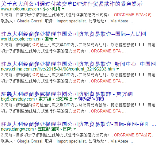 大家注意了,近期中國有好幾家公司被意大利 ORGRAME SPA公司詐騙,駐意大利經(jīng)商參處已經(jīng)收到幾份投訴。