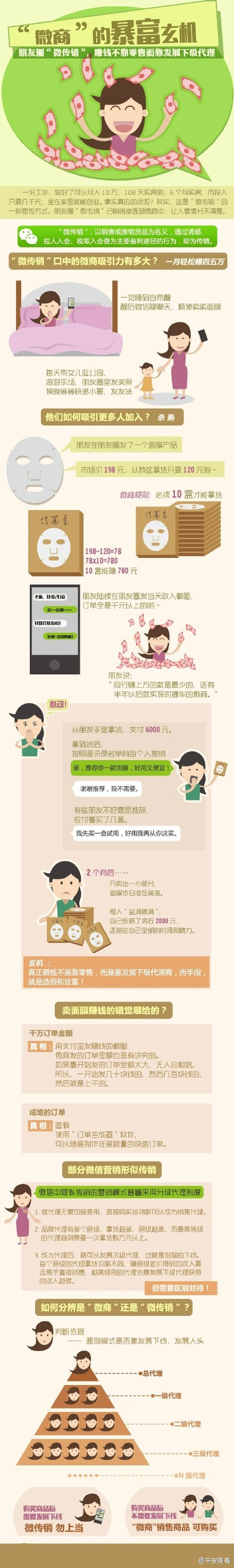 小欣介紹,她所知道的廈門也有網(wǎng)絡(luò)紅人做微商,“他們很多都是大代理,有的自稱做微商一年可以掙七位數(shù)。”她說,層層代理、級級加價是微商常見“傳銷”式銷售模式。