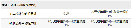 - 經指定地址的匯豐海外自動柜員機提款:所提取的外幣會以匯豐為交易日厘定的匯率兌換為港元等值;匯豐另外會于該港元等值上收取1%的兌換手續費。