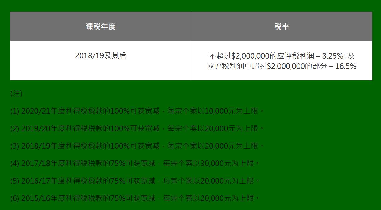 1、根據2021-22年度財政預算案,2020/21年度利得稅稅款的100%可獲寬減,每宗個案以10,000元為上限。(此建議須經立法程序才可實施。)
