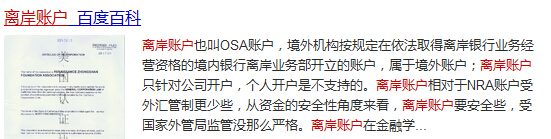 離岸賬戶(offshore bank account,也稱為海外或非居民賬戶)是您在您居住地以外的國家或地區開設的賬戶。雖然該術語可能起源于海峽群島在地理上與英國“離岸”,現在泛指任何具類似特點的海外銀行賬戶。 離岸賬戶可以由公司、個人、信托或基金會開立和維答