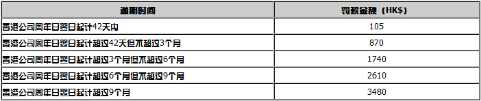 周年日翌日起計超過3個月但不超過6個月,罰款HK$1740