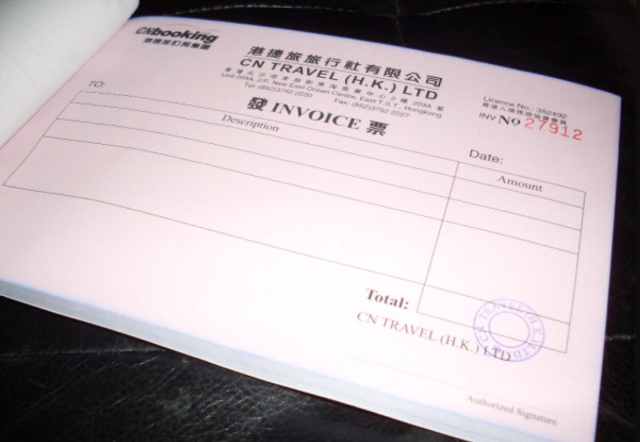 比如你在香港購物有收到票據invoice,這個是可以做為入賬憑證。可以由企業或團體單位印刷或電腦打印的,例如某公司使用電腦打印一張單據出來,在抬頭印上寫上發票或英語invoice字樣,已經算是有效的發票了,但是必須有公司蓋章及簽名章。