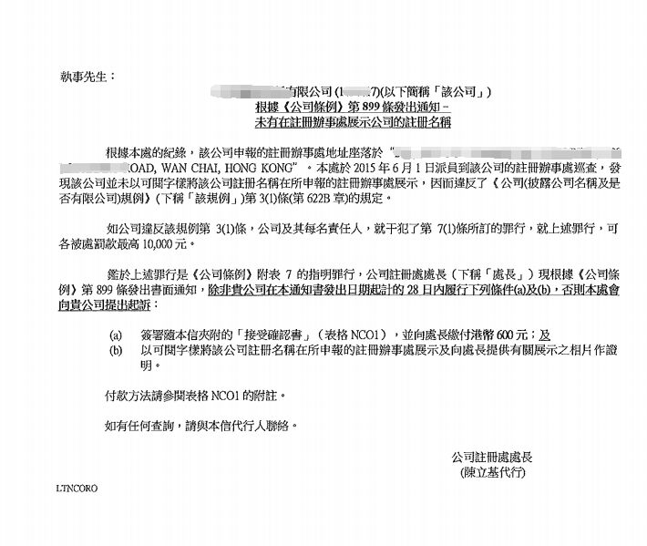 -為方便營商,該規(guī)例并無規(guī)定公司須在其經(jīng)營業(yè)務(wù)但不向公眾開放的辦事處或地點(diǎn)(該公司的注冊辦事處除外)展示其注冊名稱(該規(guī)例第2(1)條)。