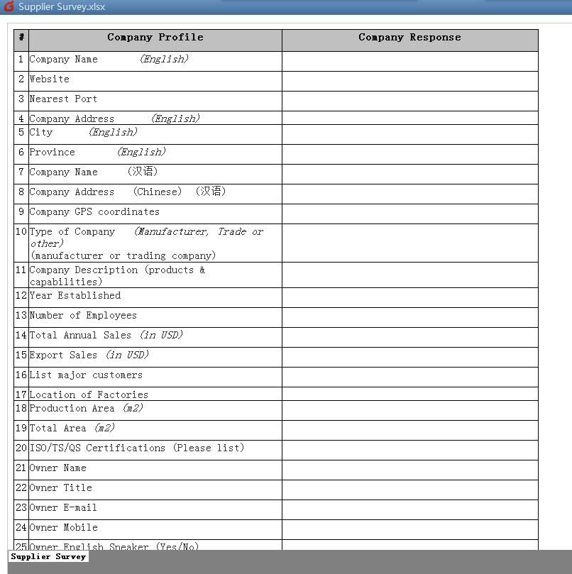 供應商調查表 Supplier Survey Form ,該怎么填?