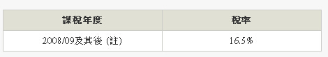 2015/2016年度香港有限公司利得稅稅率為16.5%,無限公司為15%。答