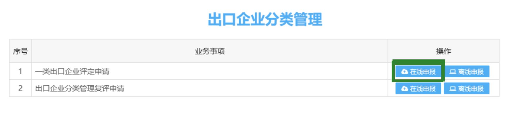 4、完成上述操作后,可勾選相應申報數據,點擊“正式申報”按鈕,完成申報操作。正式申報完成后,可以點擊打印報表下載,將申報表單下載、打印出來。5、正式申報完成后,可在申報結果查詢界面查看申報后的審核狀態。審核狀態顯示為“審核成功”,則說明數據已經正式審核通過。注意!如果出口企業希望復評為一類,需要先通過一類企業評定申請流程提交相關材料,再啟動復評流程。也可以先啟動復評流程后再通過一類企業申請流程提交相關材料,但是必須在采集評定節點完成前提交,如果沒有提交,則不得評定為一類。“一類企業評定申請”在具體申報時,也是可以通過離線版申報軟件或者電子稅務局在線申報功能進行操作。其中,電子稅務局在線申報功能,在操作時具體步驟跟出口企業分類管理復評申請是一樣的,通過【一類出口企業評定申請】》【在線申報】模塊進入,只是需要在明細數據采集時,分別點擊“新增”,填寫《出口退(免)稅企業內部風險控制體系建設報告》和《生產型出口企業生產能力企業生產能力報告》(生產企業需要)。