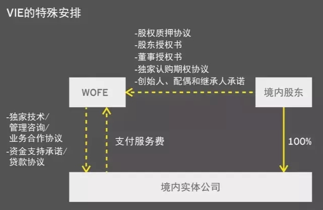 WOFE須和境內(nèi)實體公司簽署獨家技術(shù)服務(wù)或其他相類似的業(yè)務(wù)合作/管理咨詢協(xié)議,讓WOFE可以按照自己的需要來吸收境內(nèi)實體公司所賺取的利潤。