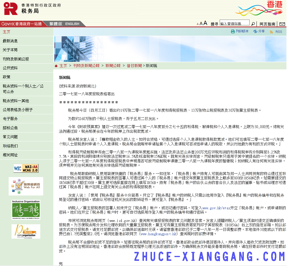 稅務局又發消息,敲定兩級制利得稅,2017-2018年度香港公司報稅稅表發放