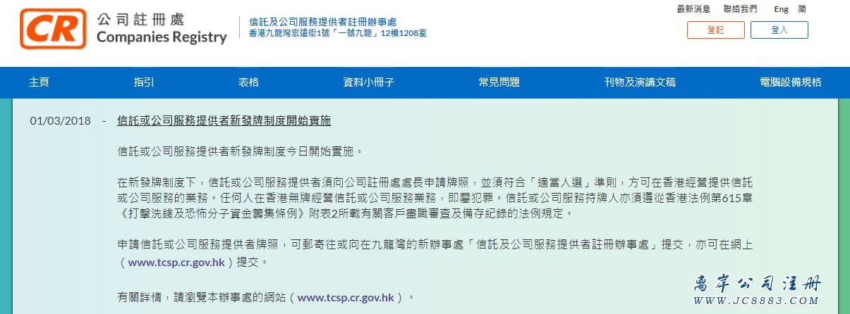 香港公司注冊處于2018年1月發布公告,信托及公司服務提供者新許可證制度根據《反洗錢及反恐融資條例》將于2018年3月1日生效。詳細公告內容如下: