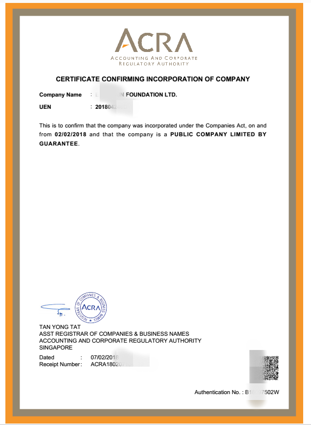 1、名稱:英文名(結尾為FOUNDATION LTD.)
