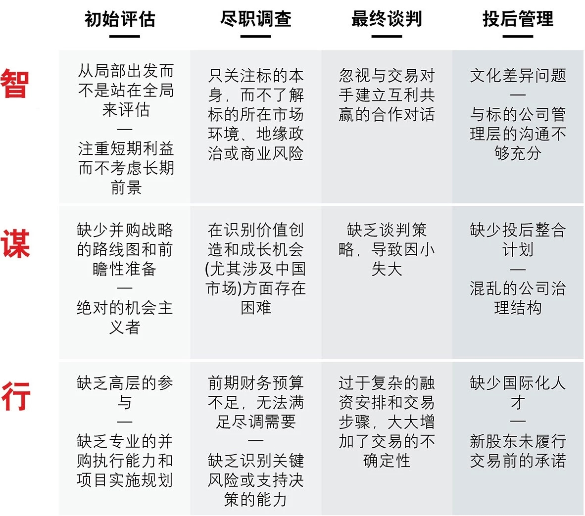 如今,中國(guó)企業(yè)在跨境并購(gòu)中面臨的最大挑戰(zhàn)就是同時(shí)達(dá)成“智”、“謀”、“行”的目標(biāo)。無(wú)法有效執(zhí)行并購(gòu)交易將成為中國(guó)企業(yè)國(guó)際化的重大發(fā)展瓶頸。