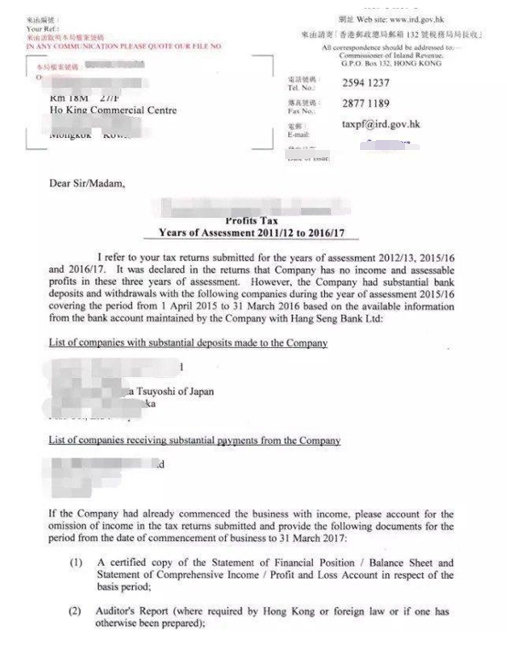 然而這一趨勢,從我司客戶最近收到的一份來自香港稅局的信件中也可以明確體現出來