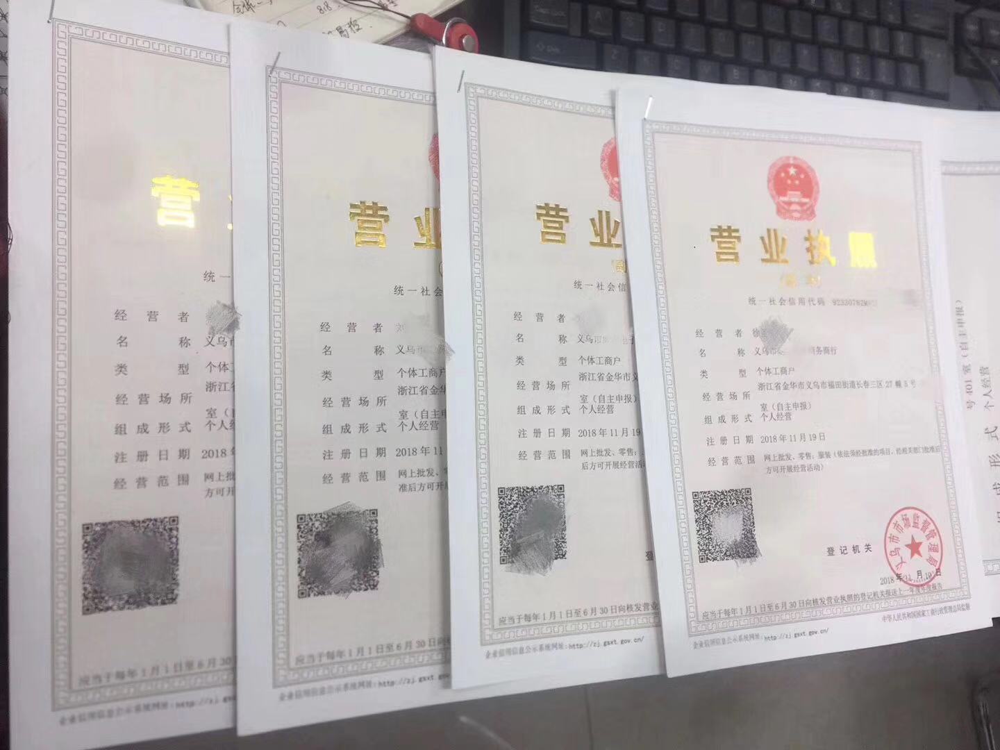 2.前期注冊執照不需要親自到義烏;開帳戶的時候來一次就可以了,需要帶上個體戶執照和身份證原件到當地銀行申請開立賬戶。