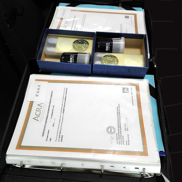 完整的文件包括:注冊證書(這個相當(dāng)于營業(yè)執(zhí)照)、注冊紙、章程、公章、鋼印、律師文件、公司成立公告、注冊地址公告、新方掛名董事授權(quán)文件、新方商業(yè)秘書授權(quán)文件、首次董事會議書、光盤、文件夾、文件盒共14項。