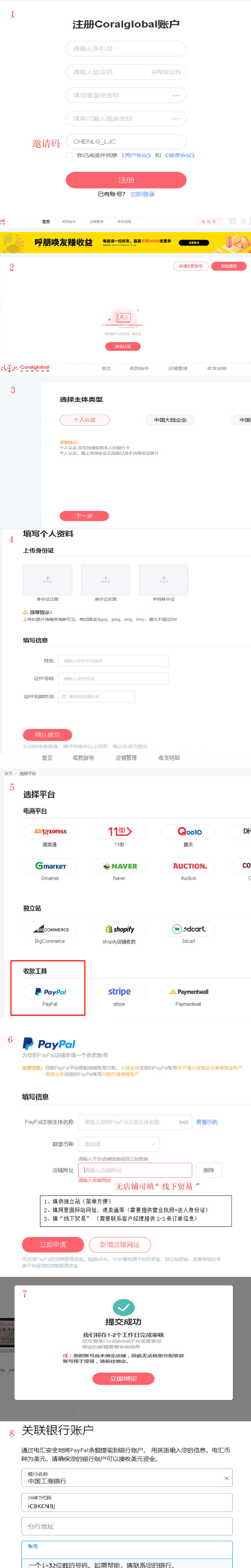 使用paypal收款然后提現結匯的問題。以往每人每年5萬外匯的結匯額度,對多數人來說是夠用的。但是由于每個城市地區的銀行政策不同,所以paypal電匯提現的結果也不一樣,多數情況大城市的銀行都是支持直接提現結匯的,小城市的一些銀行可能不支持。建議在提現的時候都會先打電話咨詢銀行是否支持結匯再操作。2019年下半年開始,銀行加強了外匯入境資金監管,銀行都要求提供資金來源證明。導致大量的paypal提現給退回。除了直接提現,還可以找第三方支付機構提現。除了大家熟悉的和P卡、WF、等提現方式,我們也來了解一下珊瑚支付的提現流程:
