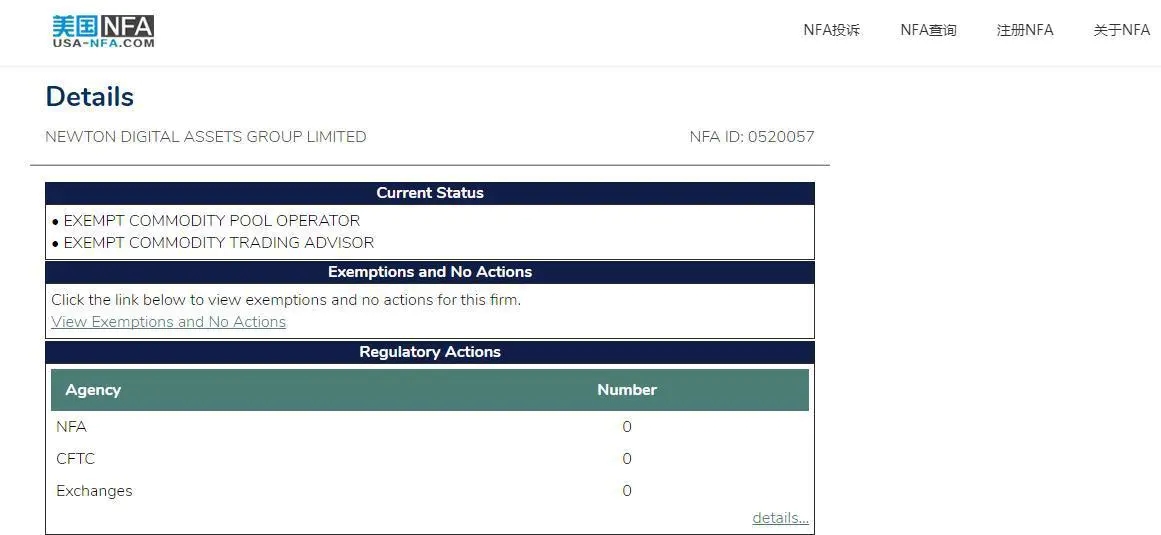 美國NFA的全稱是NationalFuturesAssociation(全國期貨協會),成立于1981年,對CTA、CPO、IB、FCM、FDM、SD等從業企業進行監管,注冊NFA將獲得金融牌照。美國期貨協會NFA目前僅監管2家零售外滙交易商,分別為GAINCapital(機構外滙業務已出售)和OANDA(已被私募股權公司CVC收購)。