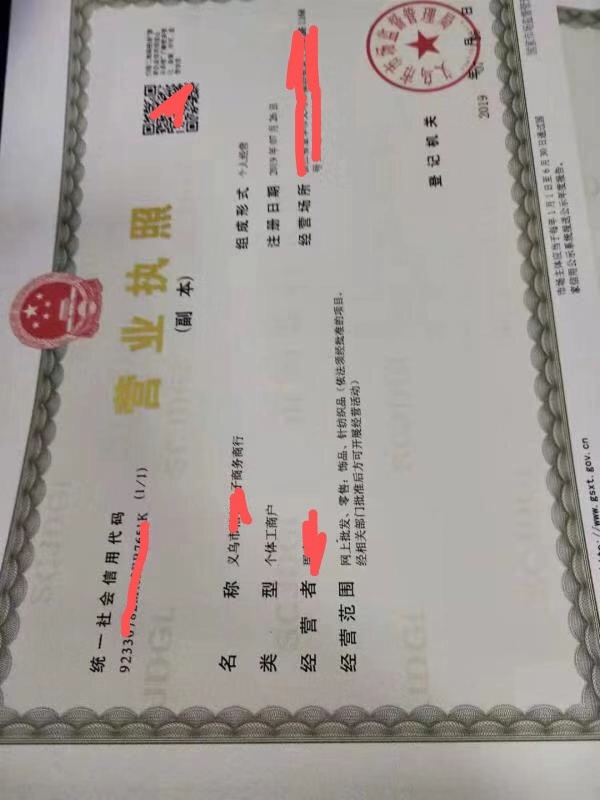 2、工商審批到領取執照:2-3個工作日,執照名稱隨機(格式:義烏市XX電子商務商行)