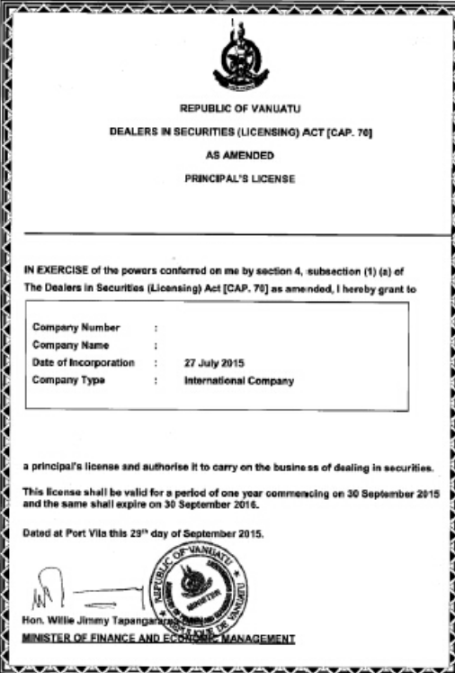 2.瓦努阿圖金融牌照是到手最快的外匯監管牌照;