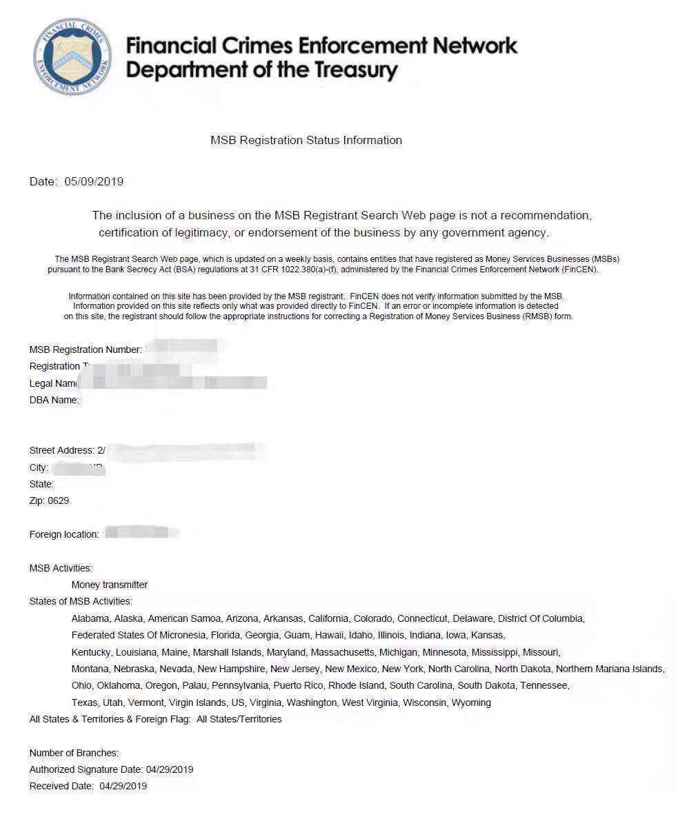 向美國財政部遞交MSB牌照的申請