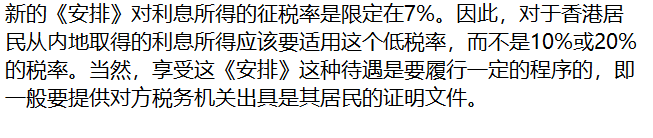 香港企業在國內取得的利息按照7%稅率交稅嗎