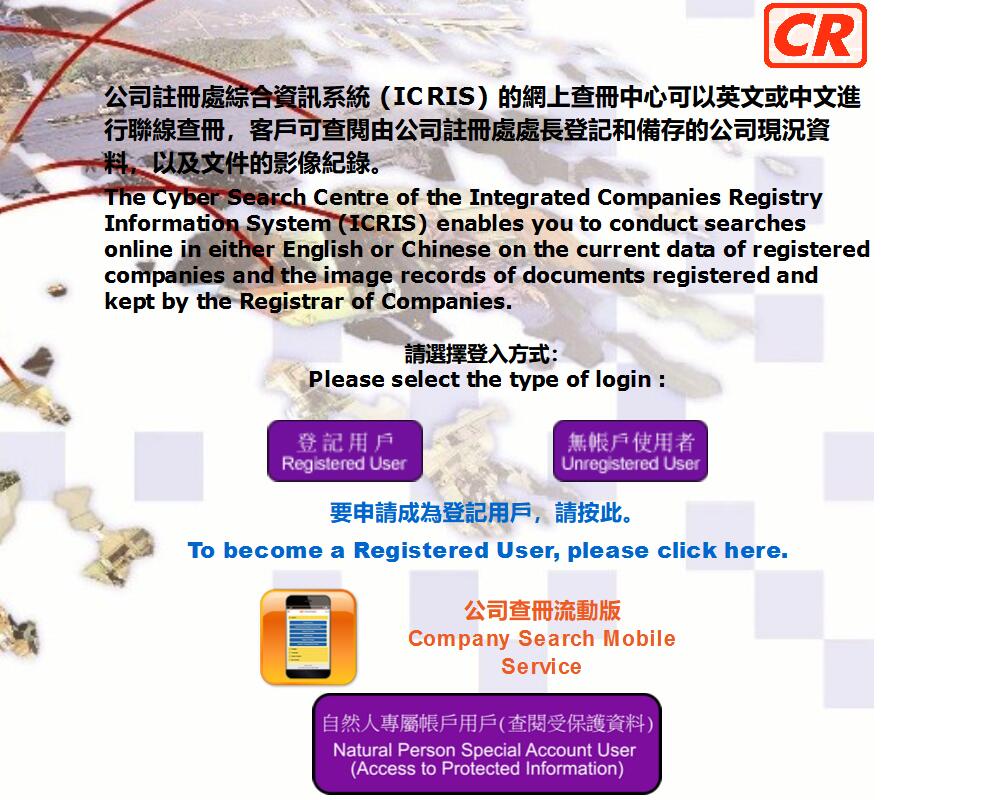 查冊中心:https://www.icris.cr.gov.hk/csci/