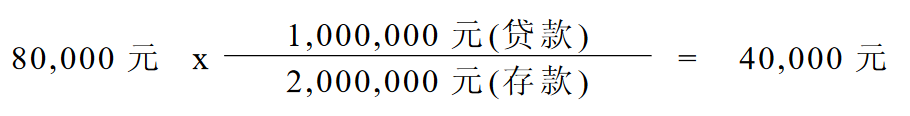 例子5的1,000,000元貸款以一筆產生80,000元免稅利息的2,000,000元存款作為唯一的保證。可扣除的利息支出金額將減少40,000元,其計算如下: