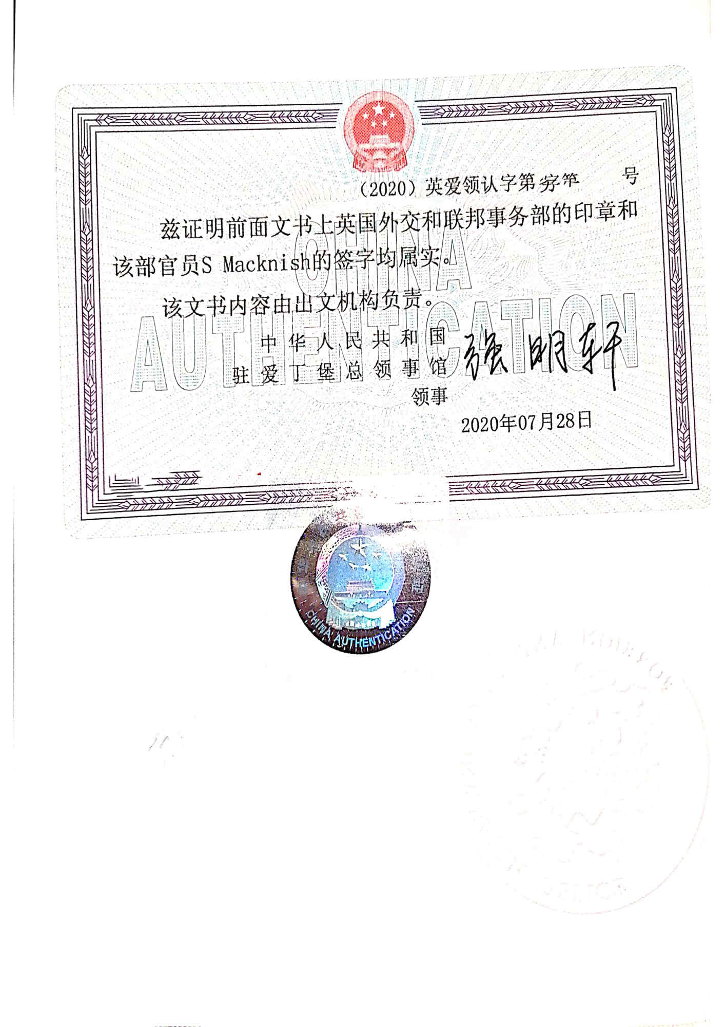 3、最后把文件送往中國駐英國使館辦理使館認證