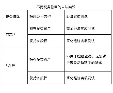 根據該意見書的答復,似乎會得出一個令人疑惑的初步結論,即BVI公司在僅持有公司股權的情形下需要進行“控股業(yè)務”的經濟實質測試,在此基礎上另行投資其他類型的資產(如政府債券、房產等)反而不再屬于從事“控股業(yè)務”,也無需接受“控股業(yè)務”的經濟測試,如果公司也未從事其他類型的“相關活動”,即可不再受《經濟實質法案》的約束。如果該初步結論能夠成立,未來其他擬上市公司存在BVI控股架構也能夠采取類似的方式免于《經濟實質法》的規(guī)制。這樣的理解是否合適?在其他稅務轄區(qū)的經濟實質法體系下是否也有類似的規(guī)避方式?