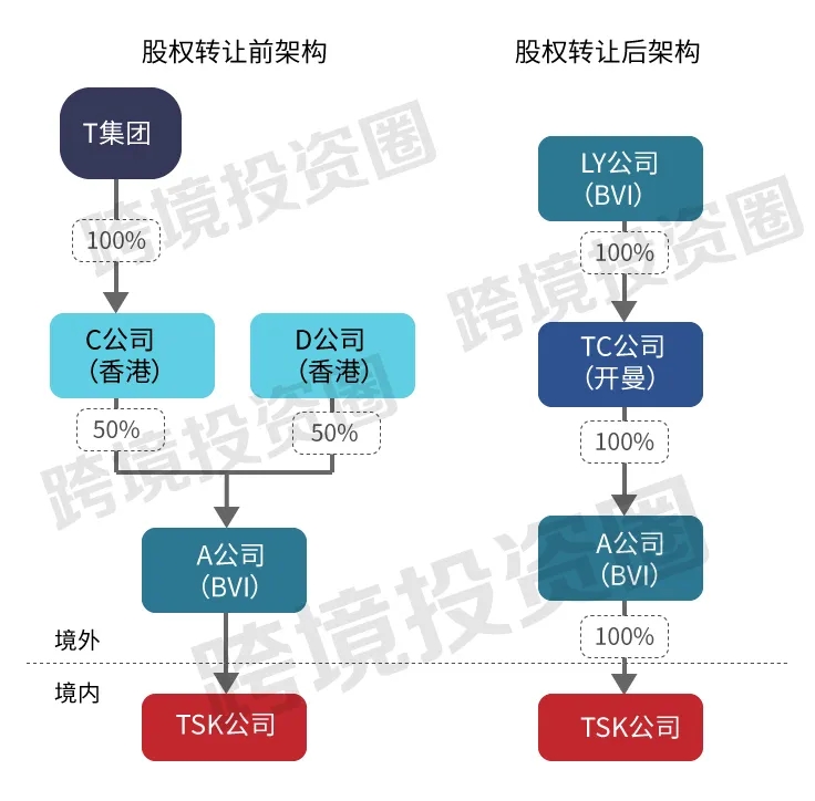- 從境外公司層面看——本次交易主要標(biāo)的為中國(guó)居民企業(yè)TSK公司。鑒于A公司(中間層公司)在BVI并無(wú)實(shí)質(zhì)性經(jīng)營(yíng)業(yè)務(wù),其實(shí)際經(jīng)營(yíng)業(yè)務(wù)均來(lái)源于境內(nèi)TSK公司,A公司的存在屬于稅收安排下的“空殼公司”,不具有合理商業(yè)目的;