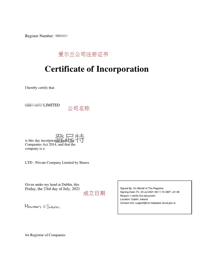 3. 注冊地址:公司注冊地址必須位于愛爾蘭境內,我司可提供愛爾蘭首都都柏林注冊地址;