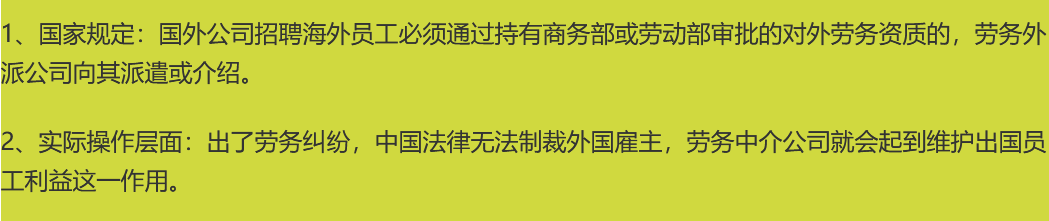 您好!香港公司、境外公司及境外駐華機構不得直接在中國境內招收勞務人員。境外公司(包括港澳臺企業)傅處在中國內地沒有用人權利,不能與中國籍職工建立勞動關系。如果代表處想招聘職工,必須通過外服公司才行。職工必須先與外服公司簽訂勞動合同,再由外服公司與香港公司(境外公司)代表處簽訂勞務輸出合同。