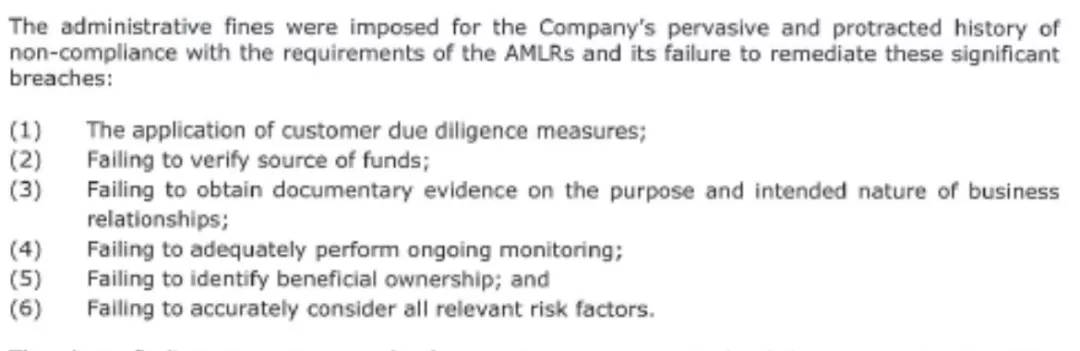 根據CIMA公布的公告,Intertrust收到如此巨額罰單的原因竟然是:因其普遍且長期違反開曼群島反洗錢(Anti-Money Laudering,“AML”)條例規定的特定法定義務,且未能糾正這些重大違規行為。