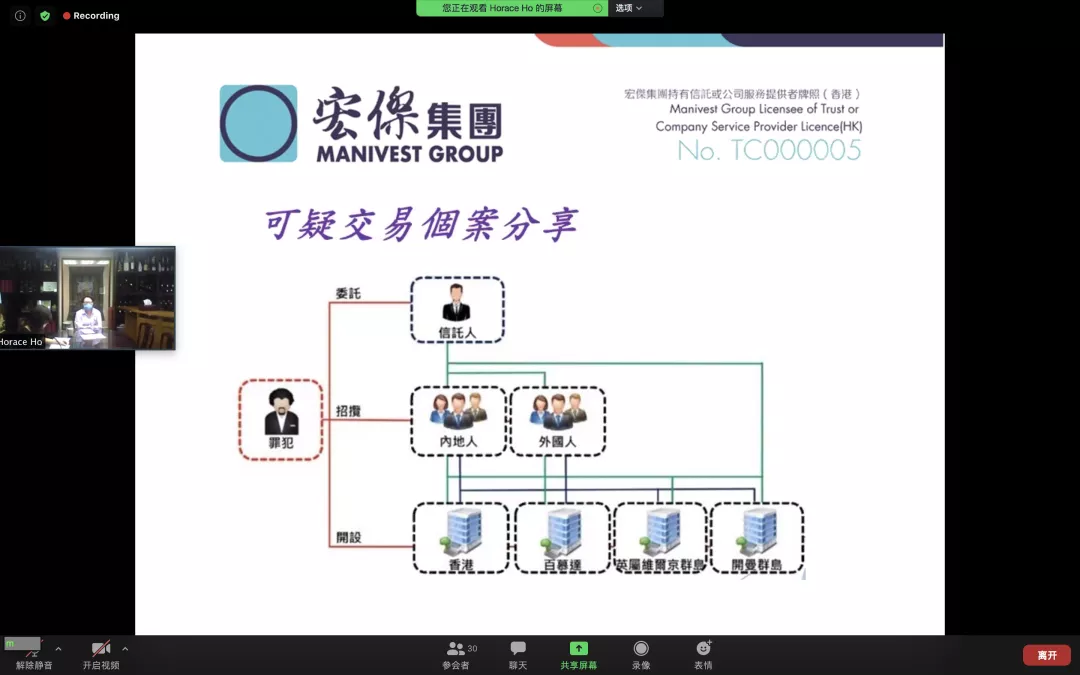 2021年5月28日,宏杰集團董事兼合規及AML負責人江詩敏律師(Simone Kong)和高級合規主任方潔婷(Kitty Fong)為合規部門的同事做了一場關于香港公司AML合規方面的線上內部培訓。