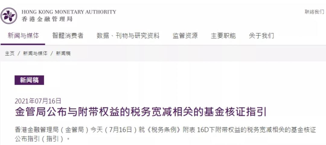 在此之前的2021年5月7日,《2021年稅務(修訂)(附帶權益的稅務寬減)條例》(“寬減條例”)已實施。金管局此次公布指引,正是為了配合稅務寬減條例而推出的配套法例,以便于香港基金(特別是有限合伙基金,即LPF)的稅務寬減申請。