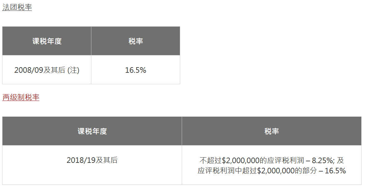 香港公司首個200萬利潤按8.25%稅率征收,200萬以后的利潤按16.5%稅率征收。